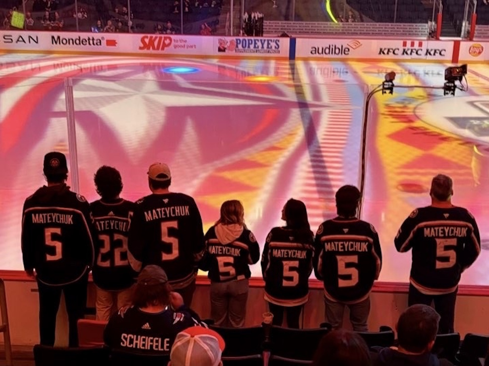 Fans representing Mateychuk at the game. (Photo credit: Kath Baczynsky)Many fans arrived wearing brand-new Blue Jackets jerseys, while others wore his old jerseys from previous teams.