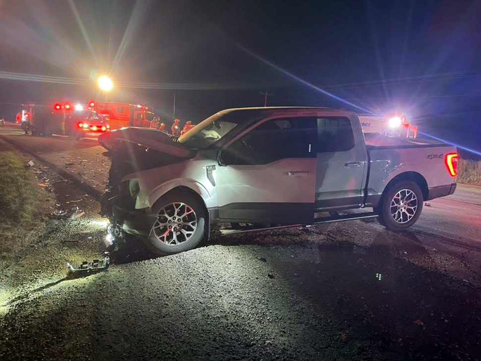 La Broquerie Deputy Fire Chief Miguel Dubé says it appears a pickup truck was travelling east when it struck an SUV that attempted to cross the highway at the intersection with Ekron Road (Road 37E).